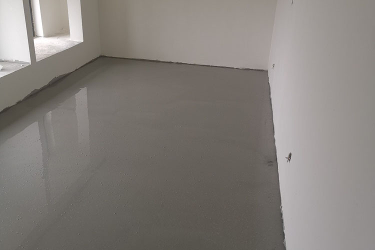 Lorsque le matériau est uniformément réparti sur le sol à niveler, avec sa grande fluidité et sa bonne ductilité,