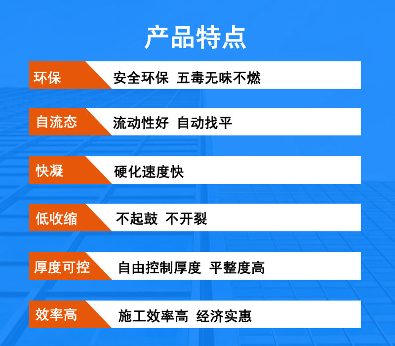 L’autonivelant en gypse est également connu sous le nom de mortier autonivelant à base de gypse, ses composants sont le gypse comme principal matériau cimentaire (gypse de construction, gypse, ciment), des agrégats spéciaux (sable de quartz, sable fabriqué à la machine, calcium lourd, microbilles vitrifiées, laitier d’acier, pierre concassée, etc.) et des additifs mortiers secs mélangés, à haute résistance, à faible retrait, pas de fissuration, pas de creusement, pas de cendres, temps de prise rapide, performances stables, épaisseur contrôlable et autres avantages, l’autonivelant en gypse est utilisé dans les usines, les ateliers, les magasins, les halls d’exposition, les parkings et autres bâtiments industriels, l’ingénierie des sols, les hôpitaux, Gymnase, nivellement d’étage de bureaux, rénovation et rénovation et autres projets d’outillage et de décoration domiciliaire. production de mortier autonivelant à base de gypse construction autonivelante à base de gypse,