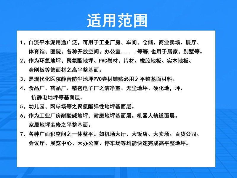 2. Les matériaux autonivelants en gypse ne peuvent pas être mélangés ou mélangés avec d’autres matériaux ;