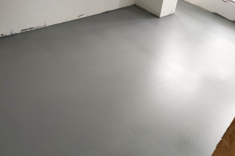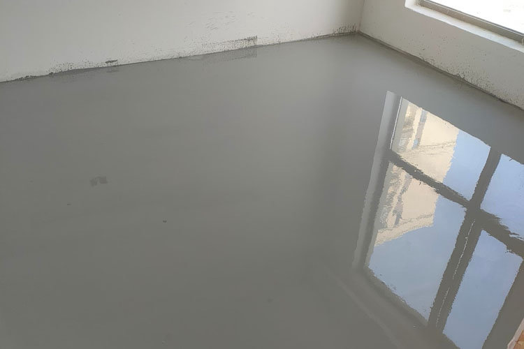 4. Versez la boue, versez l’autonivelant agité, utilisez un grattoir pour racler uniformément le nivellement auxiliaire et utilisez un tambour anti-mousse pour évacuer l’air