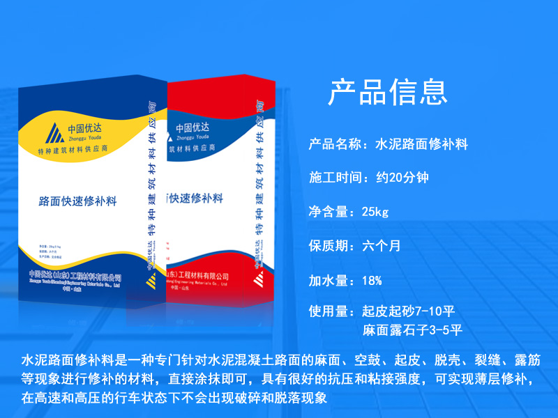Zhonggu Youda Engineering Matériaux LiaochengMatériel de réparation de chausséeLes fabricants peuvent livrer la portée : Comté de Liaocheng, Comté de Chiping, Comté de Boping, Comté de Yanggu, Comté de Shouzhang, Comté de Dong’e, Comté de Gaotang, Comté de Qingping, Comté de Tangyi, Comté de Xin, Comté de Guan, etc.