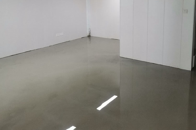 2. Brossez l’agent d’interface, utilisez l’agent d’interface à base d’eau pour enrober uniformément la couche de base et commencez la construction autonivelante à l’état semi-sec.
