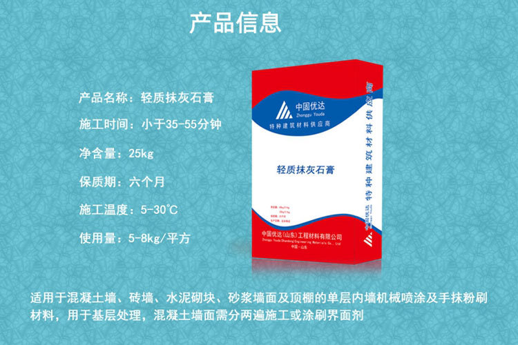Le mortier de plâtre de gypse léger, également connu sous le nom de gypse de plâtre léger et de gypse de stuc léger, est un gypse de plâtre fini fabriqué à partir de gypse de désulfuration semi-aqueuse de haute pureté comme matériau cimentaire principal, en ajoutant des agrégats légers inorganiques et une quantité appropriée d’agent de rétention d’eau, de retardateur et d’autres adjuvants, et prémélangé par l’usine. Il peut largement remplacer le nivellement traditionnel du mortier de ciment, utilisé pour le nivellement du plâtrage des murs intérieurs et des sols des bâtiments intérieurs est un matériau de plâtrage couramment utilisé dans les murs intérieurs et les toits des bâtiments, qui peut remplacer le ciment et le sable de chaux, etc., dans une large gamme d’applicabilité, adapté à n’importe quel mur, pour surmonter les inconvénients du plâtrage traditionnel, et cette adhérence de plâtrage est très forte, peut être collée avec n’importe quel substrat et ne sera pas limitée par l’épaisseur. Il est également très bon en fluidité et en saturation en eau, et peut être construit à 0 degré, ce type de plâtre à la chaux est respectueux de l’environnement et inodore, a une bonne résistance aux fissures, a l’effet d’une isolation thermique, peut ajuster l’humidité et la sécheresse de la pièce, faciliter la construction et économiser la période de construction et le processus de traitement d’interface et l’utilisation des matériaux.