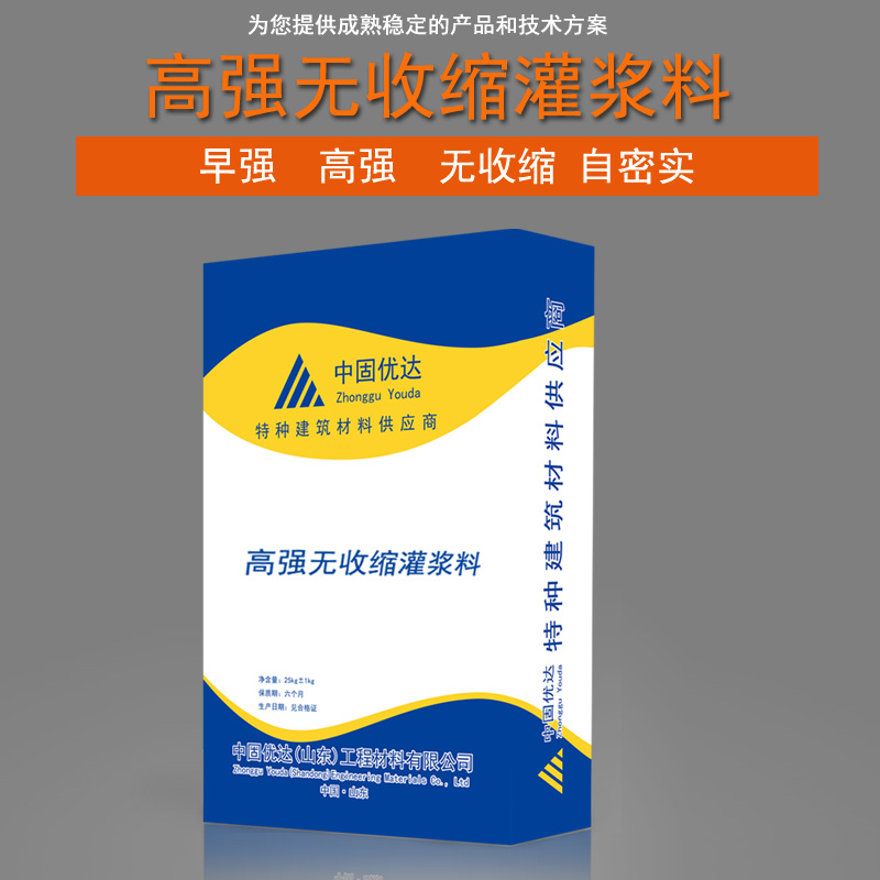 Le matériau de jointoiement à haute résistance et sans retrait est préparé avec du ciment comme liant, des matériaux à haute résistance comme agrégats, complétés par des substances à haute fluidité, micro-expansion, anti-ségrégation et autres.