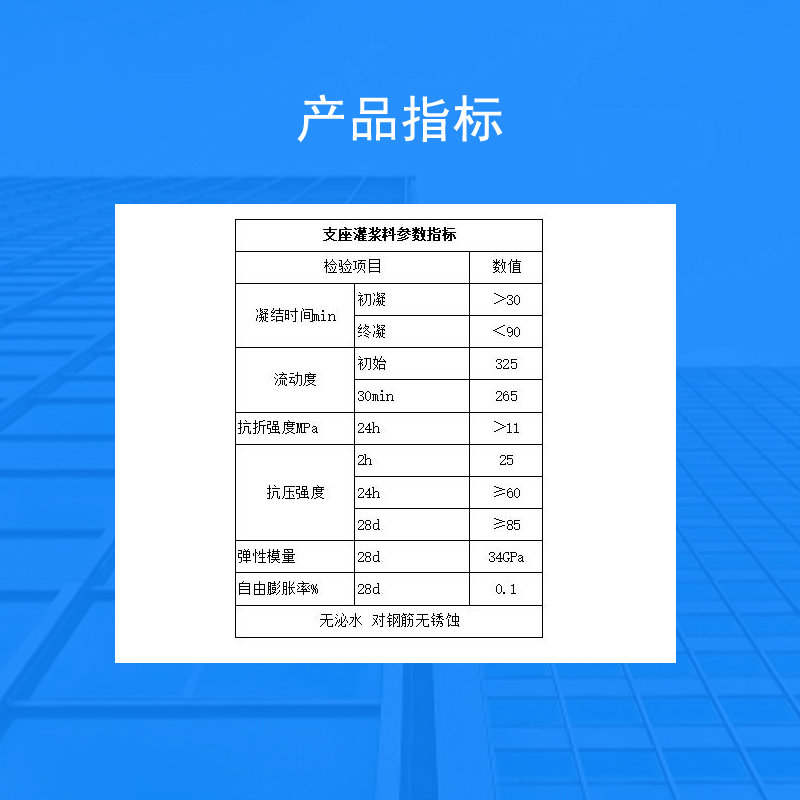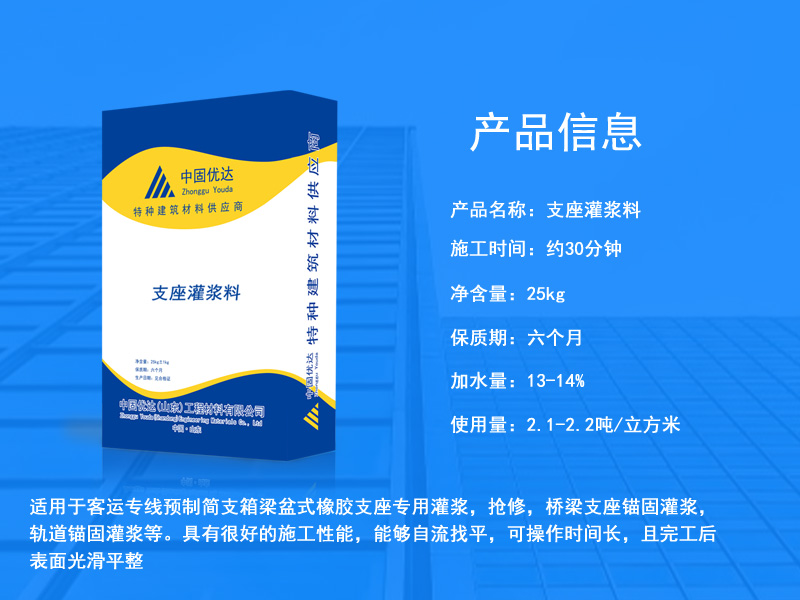 Le matériau de jointoiement est une sorte de mortier spécial à haute densité, et ses indicateurs de performance répondent aux normes nationales pour les coulis à base de ciment, aux règles de mise en œuvre pour la construction en béton à haute performance du chemin de fer à grande vitesse Pékin-Shanghai, aux conditions techniques provisoires pour les appuis en caoutchouc de type bassin pour les lignes dédiées aux passagers, aux ponts et aux exigences techniques des normes de l’industrie ferroviaire. Coulis de roulements de chemins de fer à grande vitesse, d’autoroutes, de lignes dédiées aux voyageurs, etc. Fixation rapide d’appuis de ponts ferroviaires, d’ancrages de ponts, d’ancrages de ponts, d’ancrages de voies, de coulis de remplissage. Réparation des joints de dilatation des ponts et des routes.
