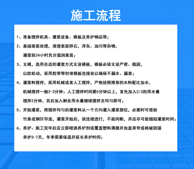 Haute fluidité : Il peut atteindre une grande fluidité en ajoutant de l’eau et en remuant sur place, et peut remplir le vide sans vibrer et insérer.