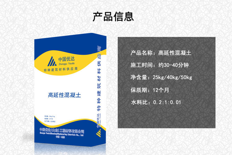 Le béton à haute ductilité est une sorte de béton à fibres très riches avec une résistance élevée à la fissuration, une ductilité élevée, une ténacité élevée et une résistance élevée aux dommages, qui est composé de ciment et d’agrégats spéciaux, complétés par une ténacité élevée et des fibres et adjuvants hautement élastiques.