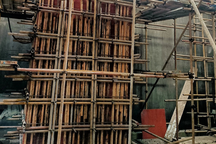 4. Versez le matériau de jointoiement uniformément brassé dans la partie de jointoiement dans une direction et, si nécessaire, utilisez des bandes de bambou ou du brasage en acier pour guider l’écoulement.