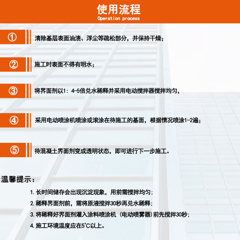 L’agent d’interface de gypse de plâtrage léger a une bonne maniabilité. Il peut être utilisé avant ou pendant la construction de gypse de plâtrage léger, ce qui réduit efficacement la difficulté de la construction et augmente l’efficacité de la construction. L’utilisation d’un agent d’interface peut réduire le fonctionnement manuel et l’intensité de la main-d’œuvre, tout en garantissant la qualité de la construction.