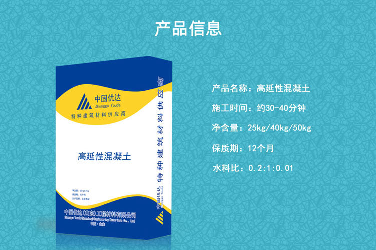 Le béton à haute ductilité est une sorte de béton à fibres très riches avec une résistance élevée à la fissuration, une ductilité élevée, une ténacité élevée et une résistance élevée aux dommages, qui est composé de ciment et d’agrégats spéciaux, complétés par une ténacité élevée et des fibres et adjuvants hautement élastiques.