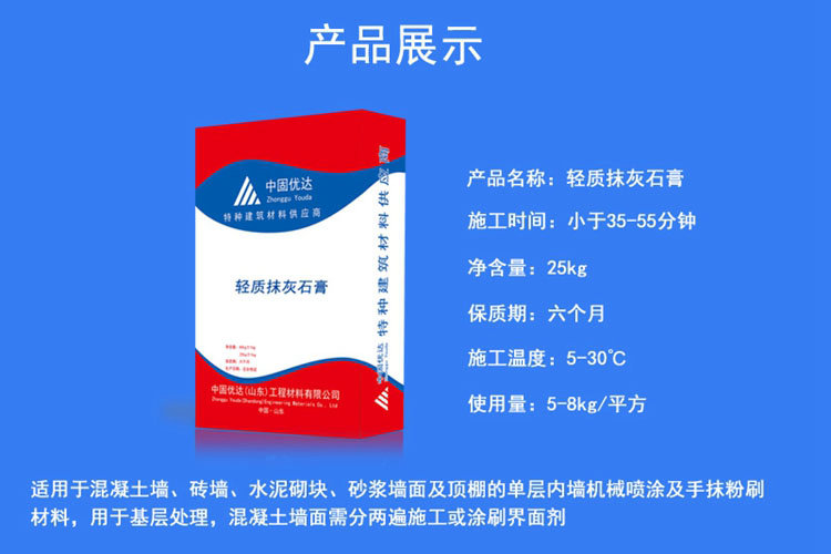 Il a une bonne rétention d’eau et une bonne maniabilité, et est utilisé pour le béton cellulaire et d’autres murs à forte absorption d’eau, ce qui peut garantir que la réaction d’hydratation est complète après le plâtrage, et la résistance de la couche de plâtre ne sera pas réduite en raison de la perte d’eau. Pour tous les types de murs, tels que le béton, le béton cellulaire, etc., il n’y a pas besoin de traitement d’interface, peut être utilisé directement, économiser efficacement les coûts d’ingénierie, économiser la période de construction, le gypse de plâtrage à fond léger peut survivre à un moment donné, et en raison de sa résistance croissance rapide, facile à sécher, peut économiser de nombreux processus, accélérer la progression de la construction, adapté aux opérations de plâtrage sont grandes, la période de construction serrée du projet. Il a les caractéristiques d’excellentes performances et de bonne adhérence, et convient au plâtrage intérieur des murs et des plafonds des bâtiments industriels et civils, résolvant efficacement les problèmes de qualité courants tels que le creusement, la fissuration et la chute dans les projets de plâtrage, et devenant un produit alternatif idéal pour le mortier de ciment et le mortier mixte.