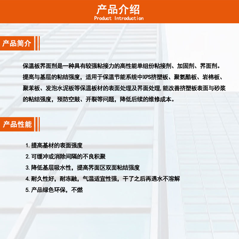 Il convient au prétraitement de l’interface de base du béton, du béton cellulaire, des petits blocs, des cloisons légères, des murs en brique-béton, du grattage de mastic, du collage de carreaux, du revêtement arrière de maçonnerie et des panneaux d’isolation thermique.