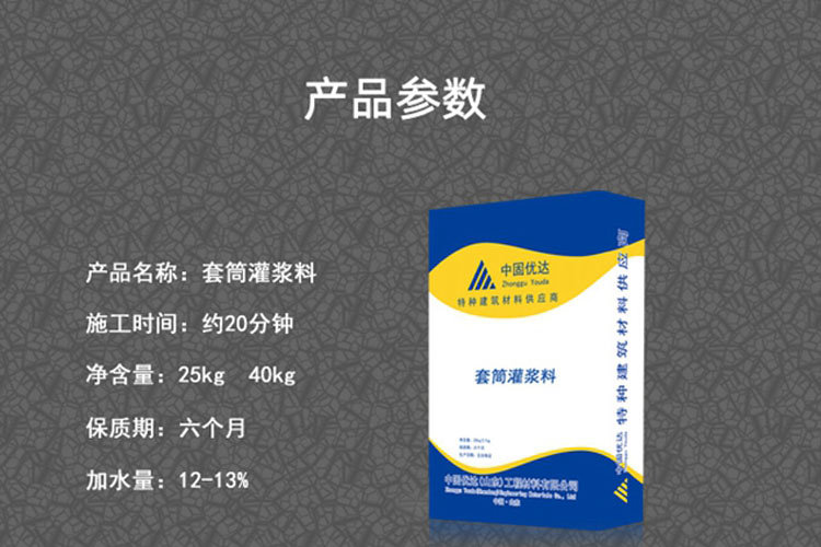 1. L’assemblage par manchon des composants préfabriqués en béton tels que les logements préfabriqués et les logements industrialisés, les colonnes à cadre préfabriquées et les murs de cisaillement avec la fondation ; 2. Coulis secondaire de fondations d’équipements à grande échelle, coulis de boulons de base de colonne de structure en acier de grande hauteur