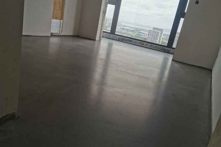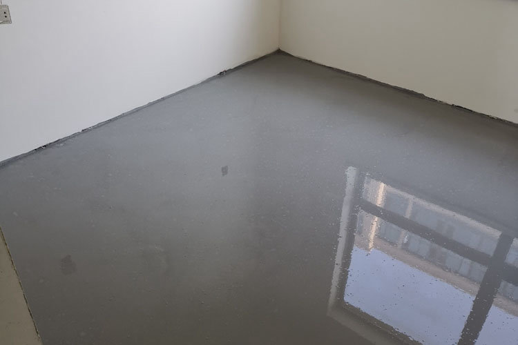 2. Brossez l’agent d’interface, utilisez l’agent d’interface à base d’eau pour enrober uniformément la couche de base et commencez la construction autonivelante à l’état semi-sec.