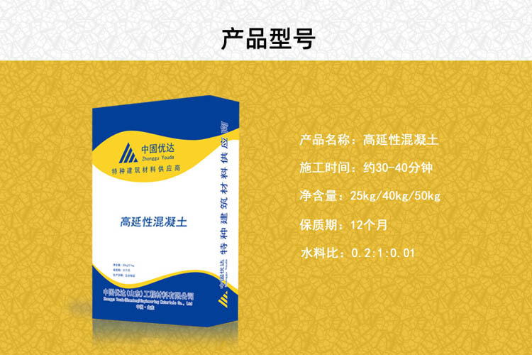 Le béton à haute ductilité est une sorte de béton à fibres très riches avec une résistance élevée à la fissuration, une ductilité élevée, une ténacité élevée et une résistance élevée aux dommages, qui est composé de ciment et d’agrégats spéciaux, complétés par une ténacité élevée et des fibres et adjuvants hautement élastiques.